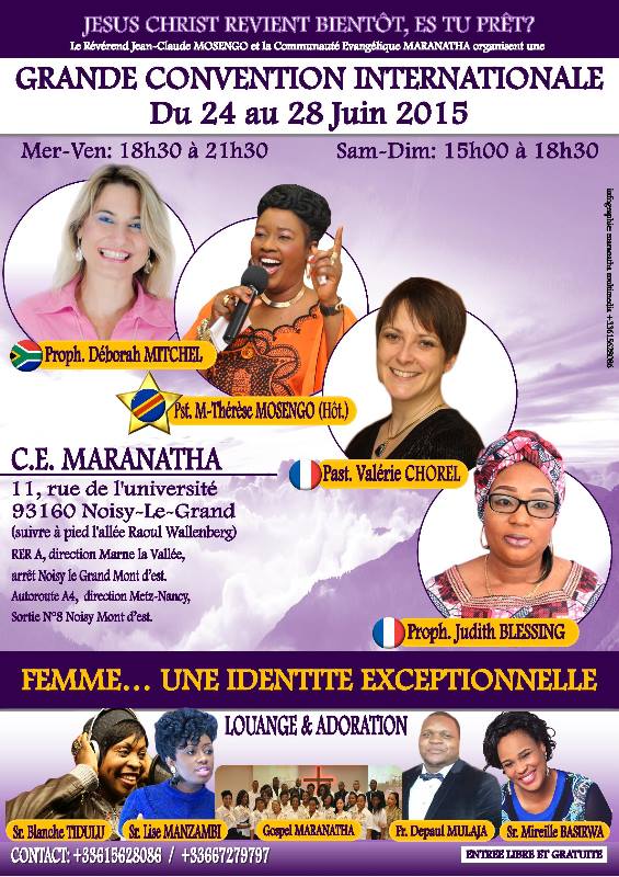 L’hôte, la révérende Marie-Thérèse Mosengo aura l’honneur de bénir le peuple, avec à ses côtés, la Prophétesse Déborha Mitchel, le Pasteur Valérie Chorel et la Prophétesse
