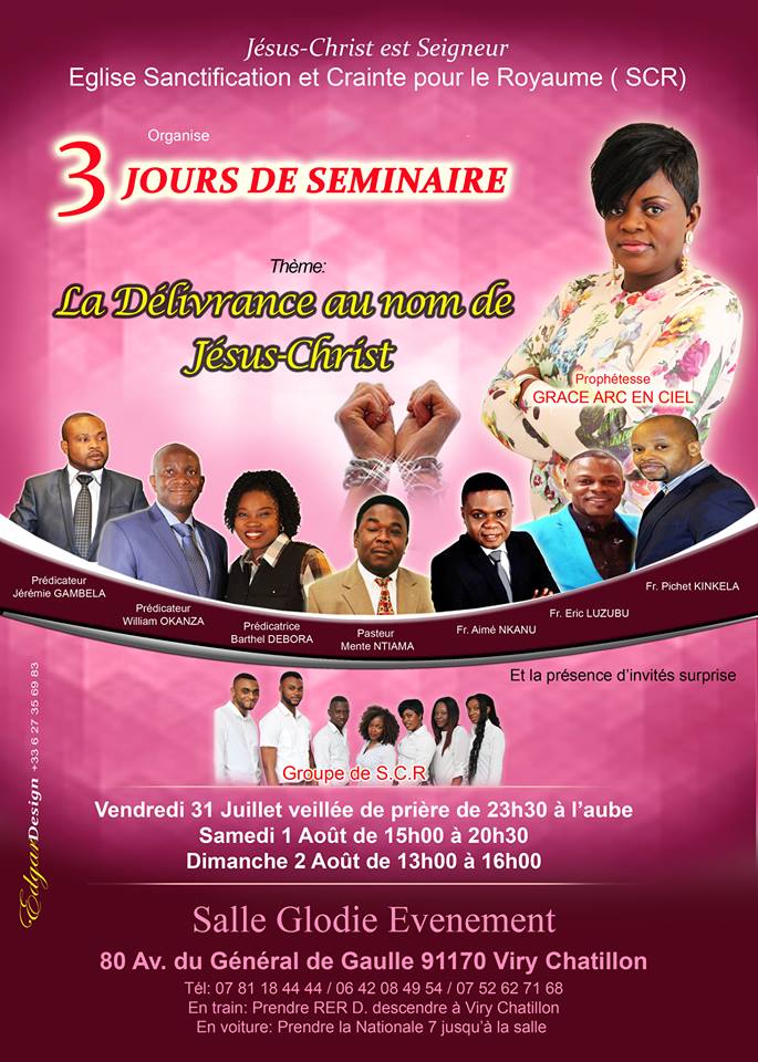 L’Eglise S.C.R. vous donne alors rendez-vous le 31 juillet à 23h30 pour un prélude en prières intenses, puis le samedi 1er août de 15h00 à 20h30 et enfin le dimanche 2 août de 13h00 à 16h00 pour une clôture au son de la victoire.