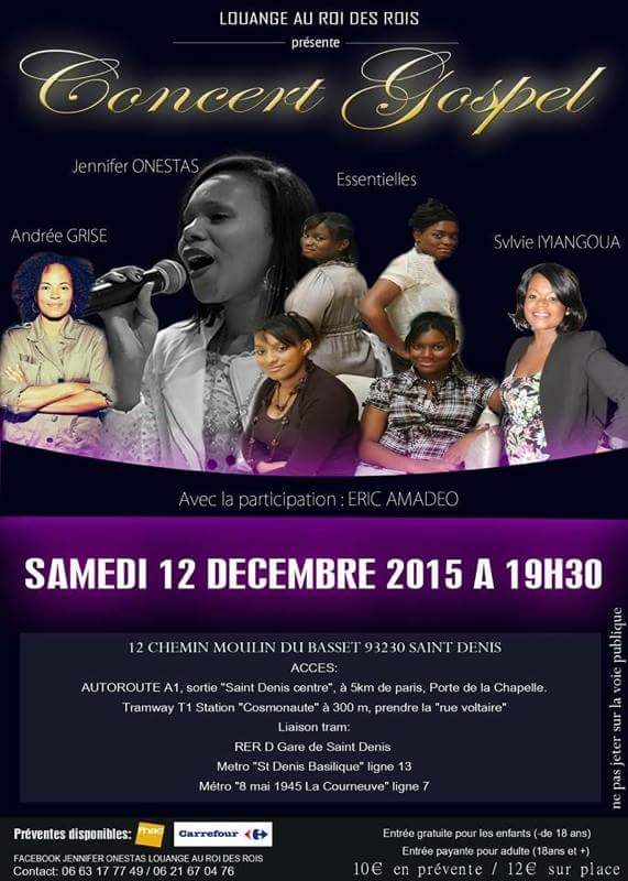 au coeur dévoué pour l’évangélisation, annonce un concert de Gospel le 12 décembre 2015.